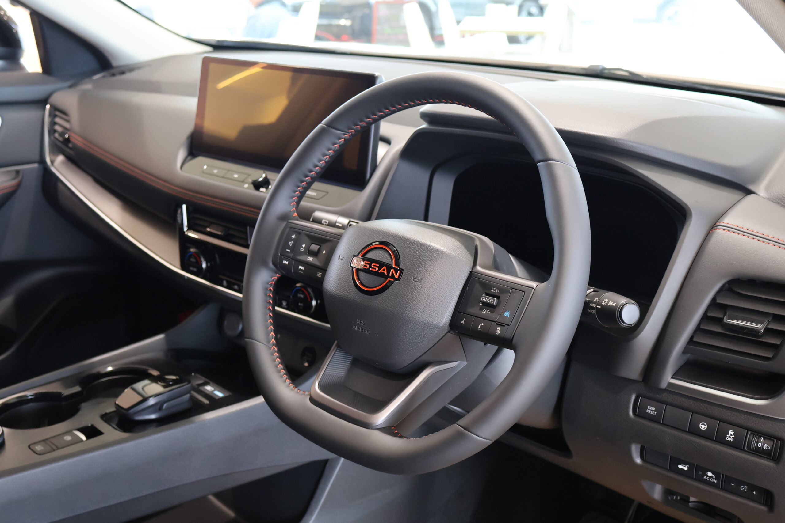 キャニオンベージュにスーパーブラックのルーフを組み合わせた日産新色の2トーンは「ROCK CREEK」専用カラーとして設定。「溶岩をイメージしたラバレットカラーのアクセントが目を引きます! 力強いデザインで、アウトドアにもピッタリです!」と、菅原さんはSUVとしての存在感や力強さをより高めたスタイルに注目している。