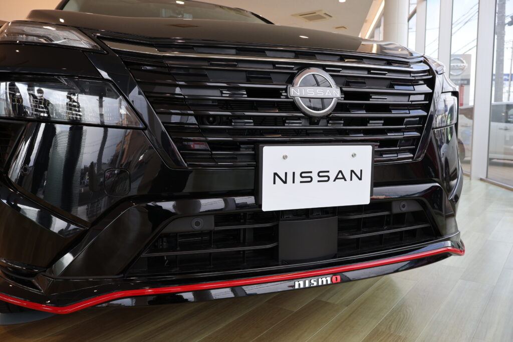 選りすぐったエレメントをまとい、⾛るために磨き抜かれた⾻格。専⽤のフロントグリルやエンブレム、空⼒ファンクションを象徴するレッドアクセントなど、⼀⽬でNISMOとわかる。