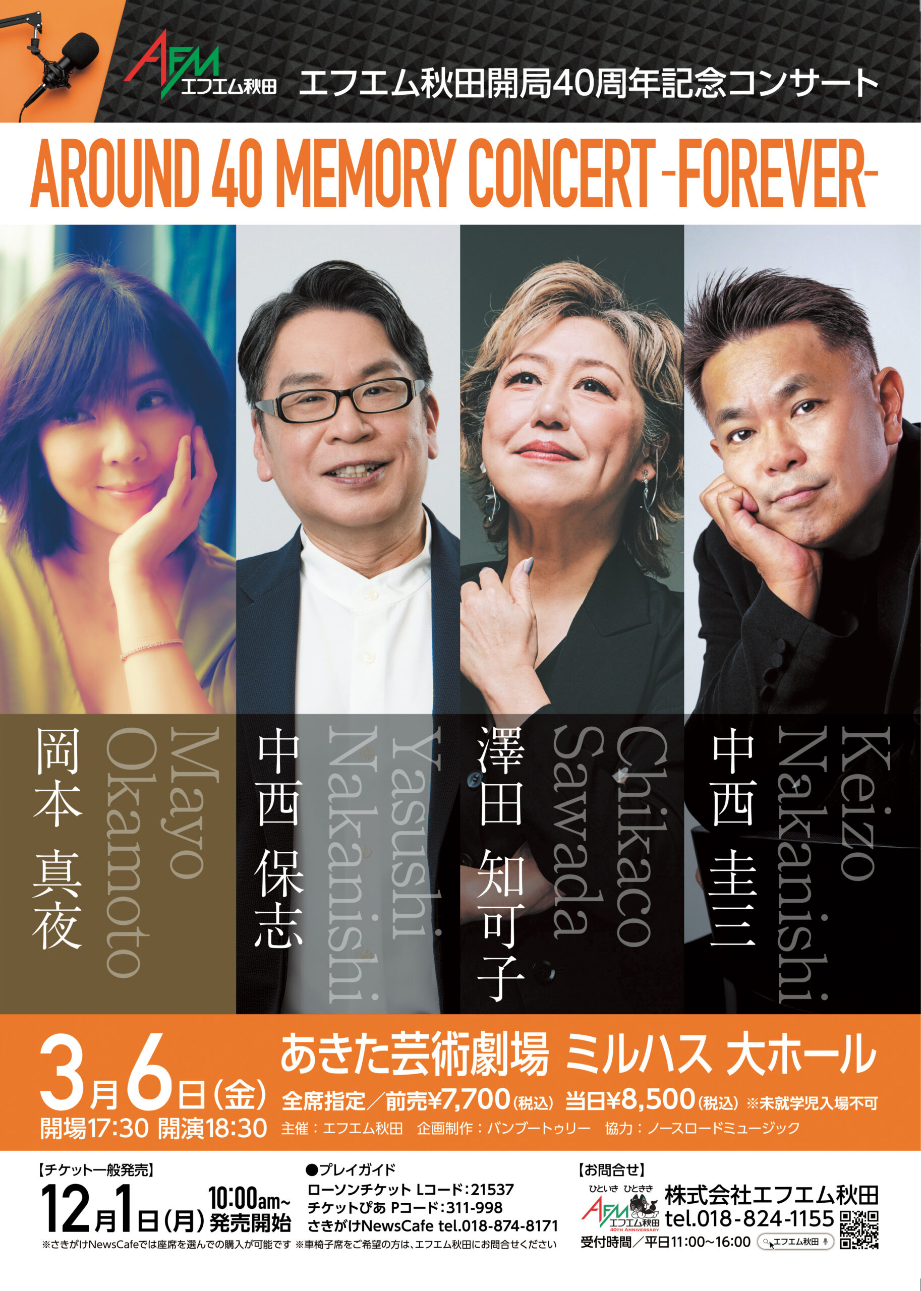 2025年に40周年を迎えたエフエム秋田。節目を記念し、岡本真夜、中西保志、澤田知可子、中西圭三、4名の豪華アーティストを招いたスペシャルコンサートを届ける。チケット発売中。