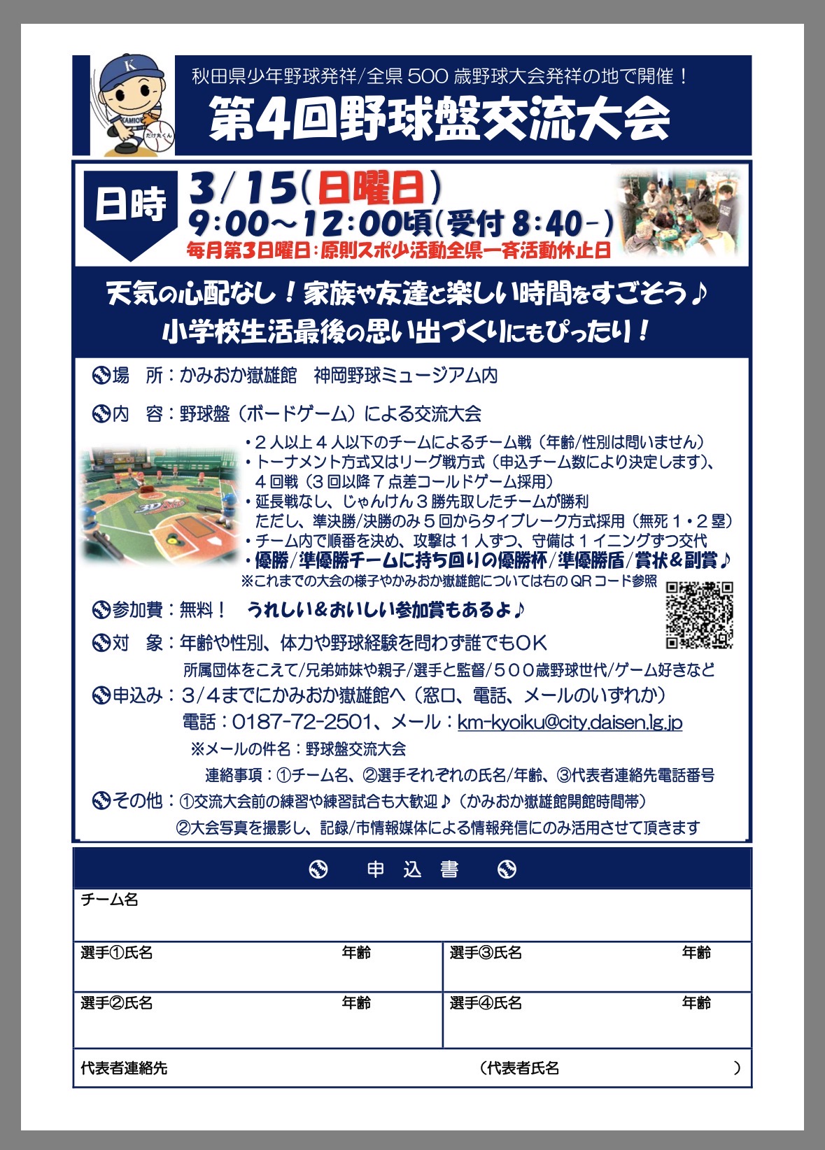 「秋田県少年野球発祥の地」、「全県500歳野球大会発祥の地」である大仙市神岡地域で、地域文化とスポーツをキーとしたイベントを開催。老若男女、経験の有無を問わず誰もが楽しめ「野球盤(ボードゲーム)」を通じて交流できる。また、同館では、夏に盛大に開催された「世界少年野球大会」に関する記念展も開催しているので、併せてチェックしてみて。申し込みなどの詳細はホームページで確認を。