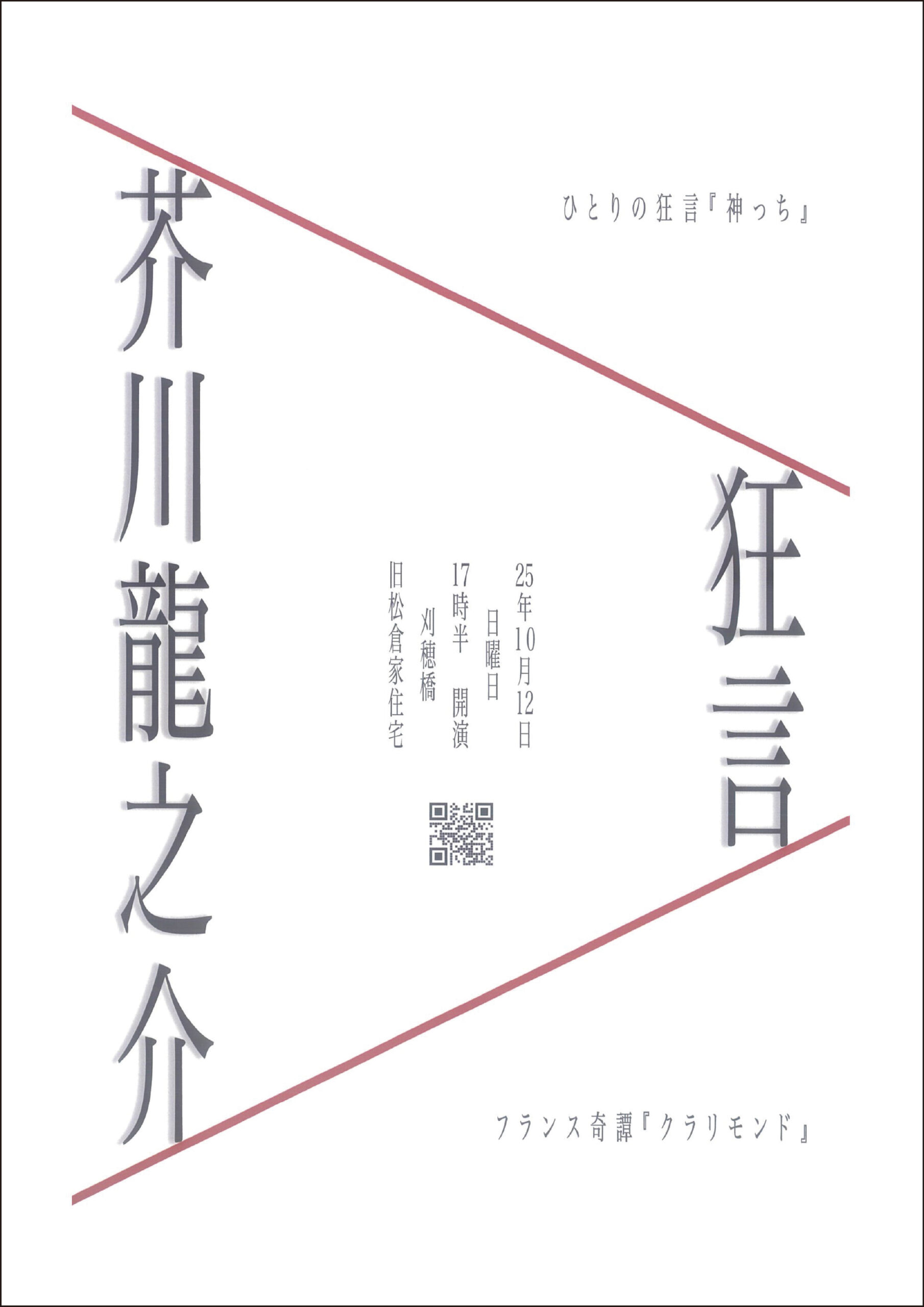 秋田市にある旧松倉家住宅にて、狂言師・石田幸雄による芥川龍之介「クラリモンド」が上演される。長年、秋田で狂言の普及活動に尽力してきた石田氏。原作であるフランス怪奇的恋愛小説の妖しく切ない物語が古民家と溶け合う、幽玄な世界に注目を! チケットの購入はホームページまたは電話で。