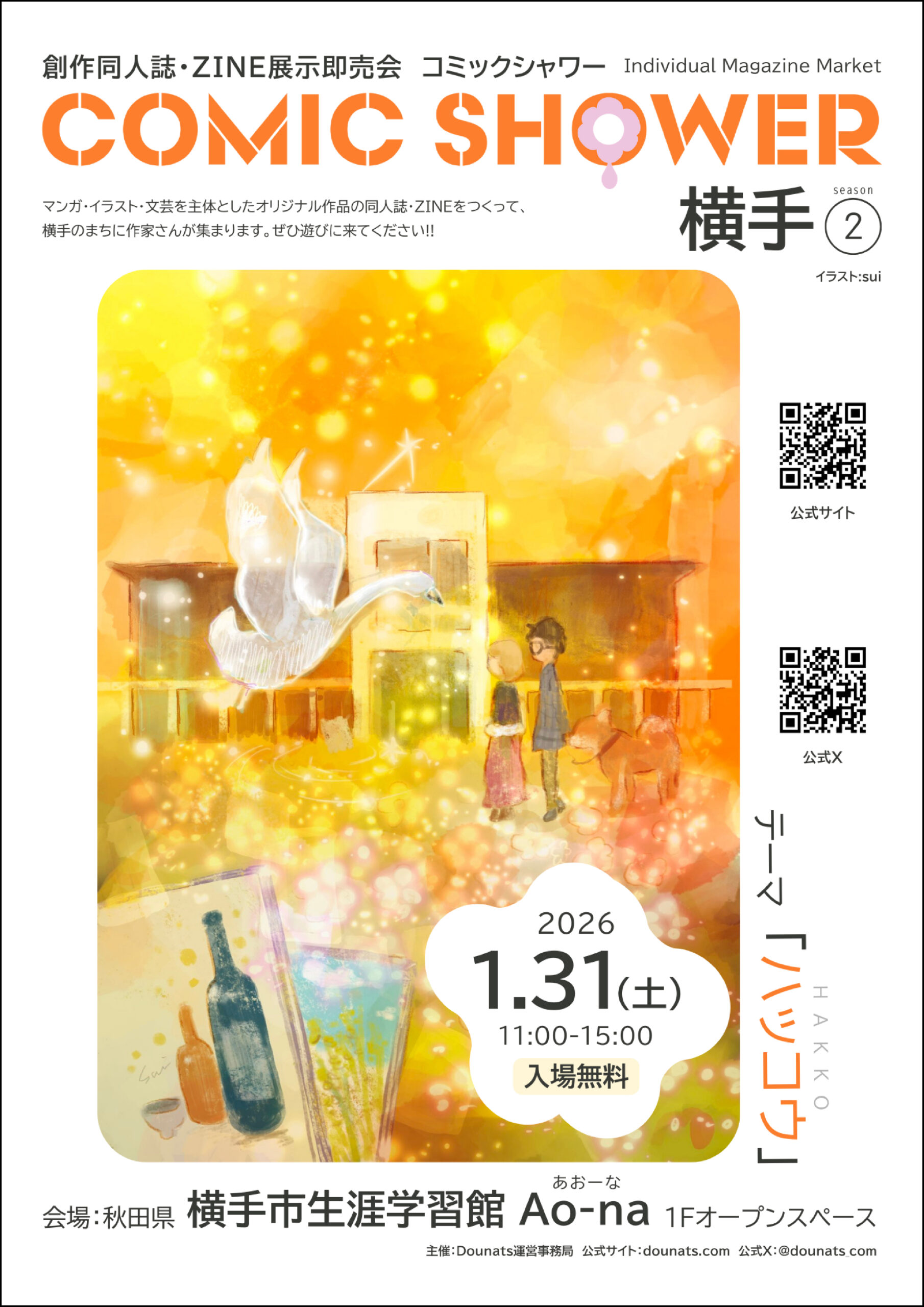 マンガ・イラスト・文芸を主体としたオリジナル作品の同人誌・ZINE(ジン)の展示即売会イベント「COMIC SHOWER 」。開催に向け、2026年1月5日(月)まで出品者を募集しているので、気になる方はぜひ参加してみて。会場で作家の個性的な表現の数々を楽しもう。