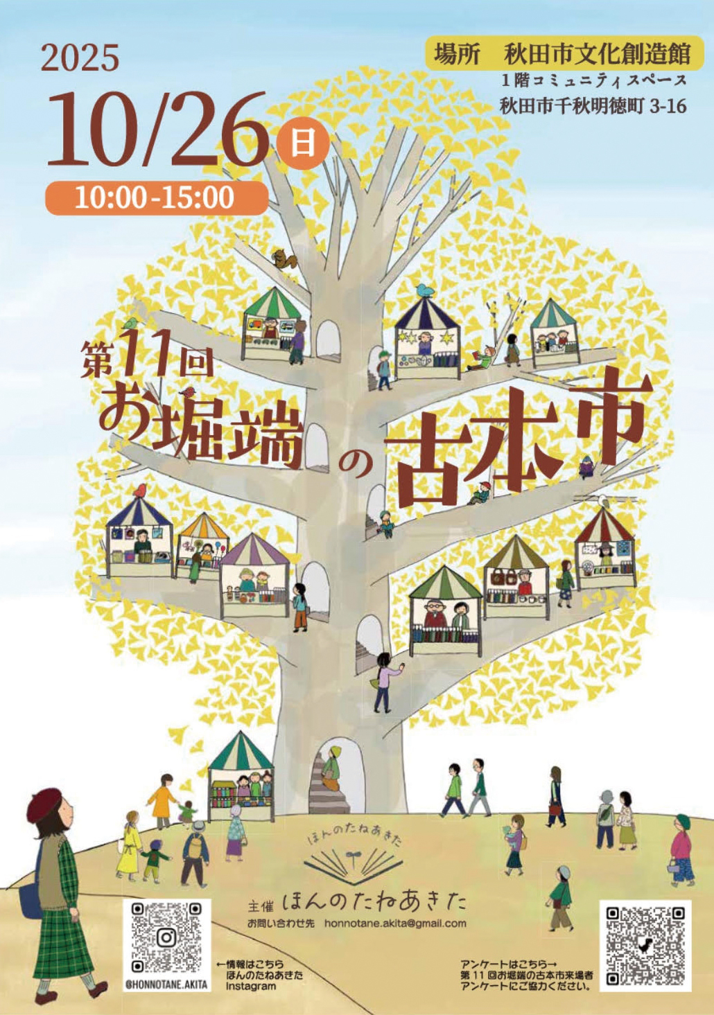 秋田県内はもちろん、東北各県をはじめ、関東などから合計約40店舗の古本屋が出店する県内最大の古本市。子どもが店主の出店もあり。掘り出し物を見つけに、足を運んでみよう。