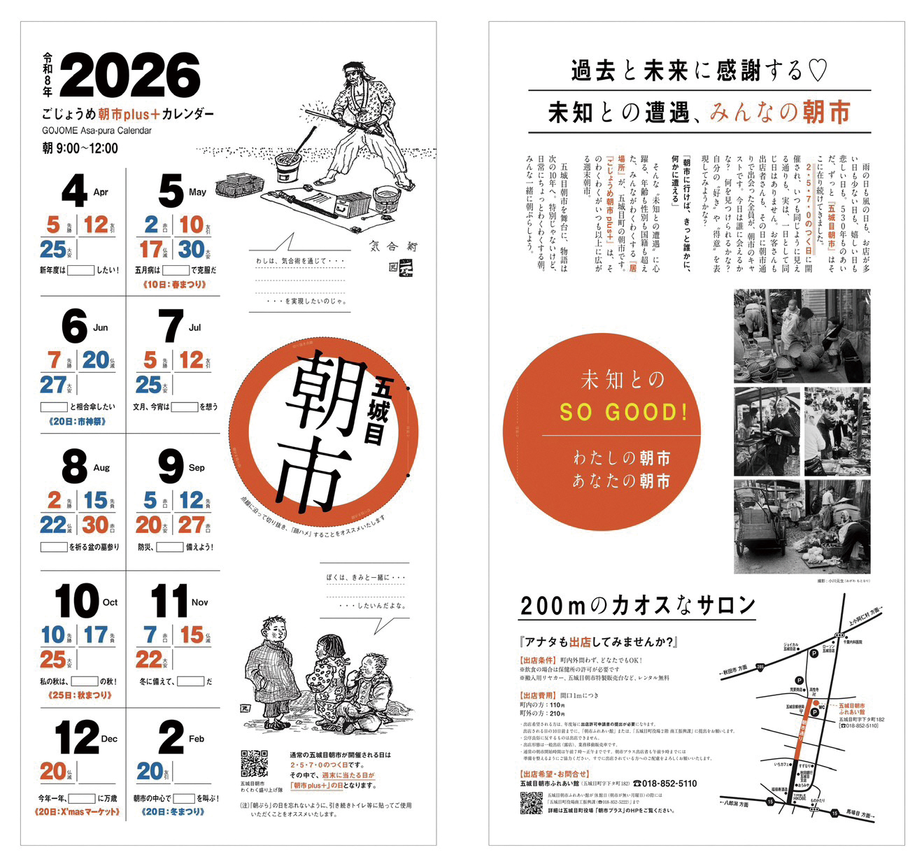 4月から「ごじょうめ朝市plus+」が定期開催! 地元でとれた野菜や果物、山菜のほか、アクセサリー、焼き菓子、キッチンカーも多数出店します。「朝市に行けば、きっと誰かに何かに遭える」、そんな〈未知との遭遇〉ができる〈居場所〉です。朝市に「ぷらっ」とお立ち寄りください。