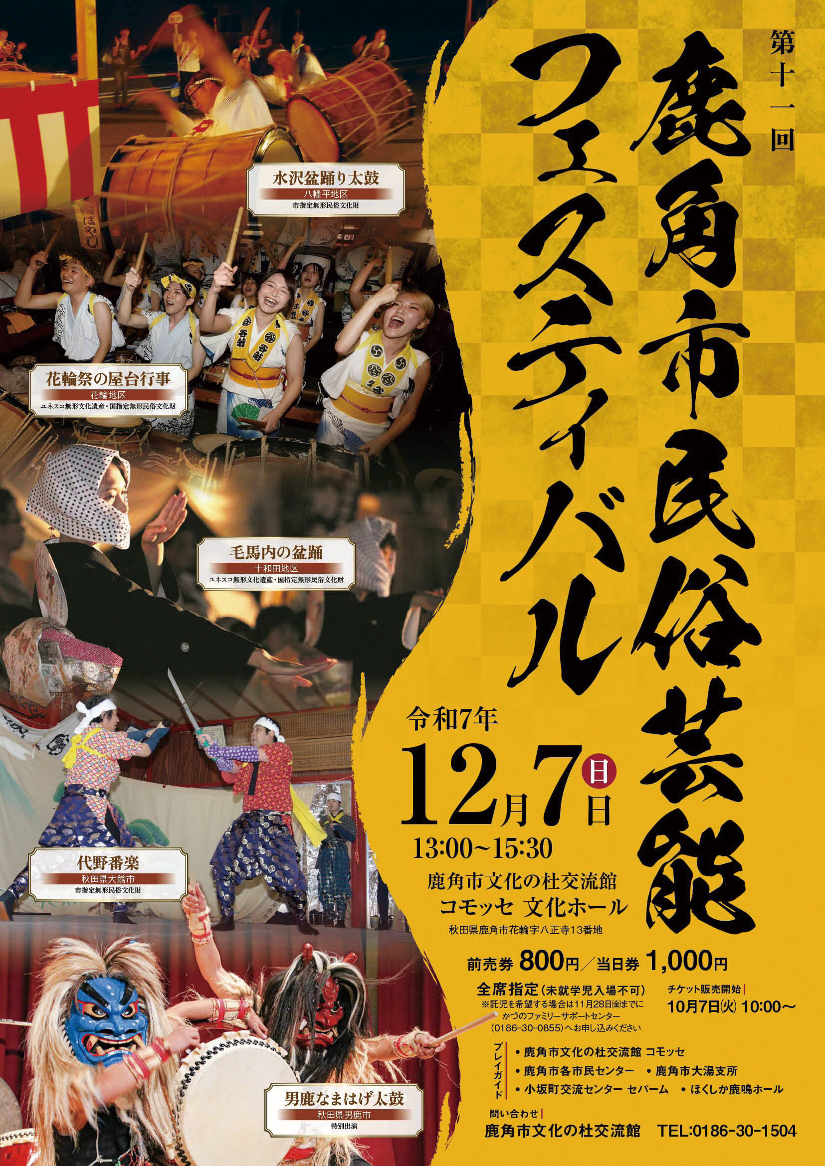 (トップ)前売券は鹿角市文化の杜交流館コモッセ、鹿角市の各市民センター、鹿角市大湯支所などで発売中。