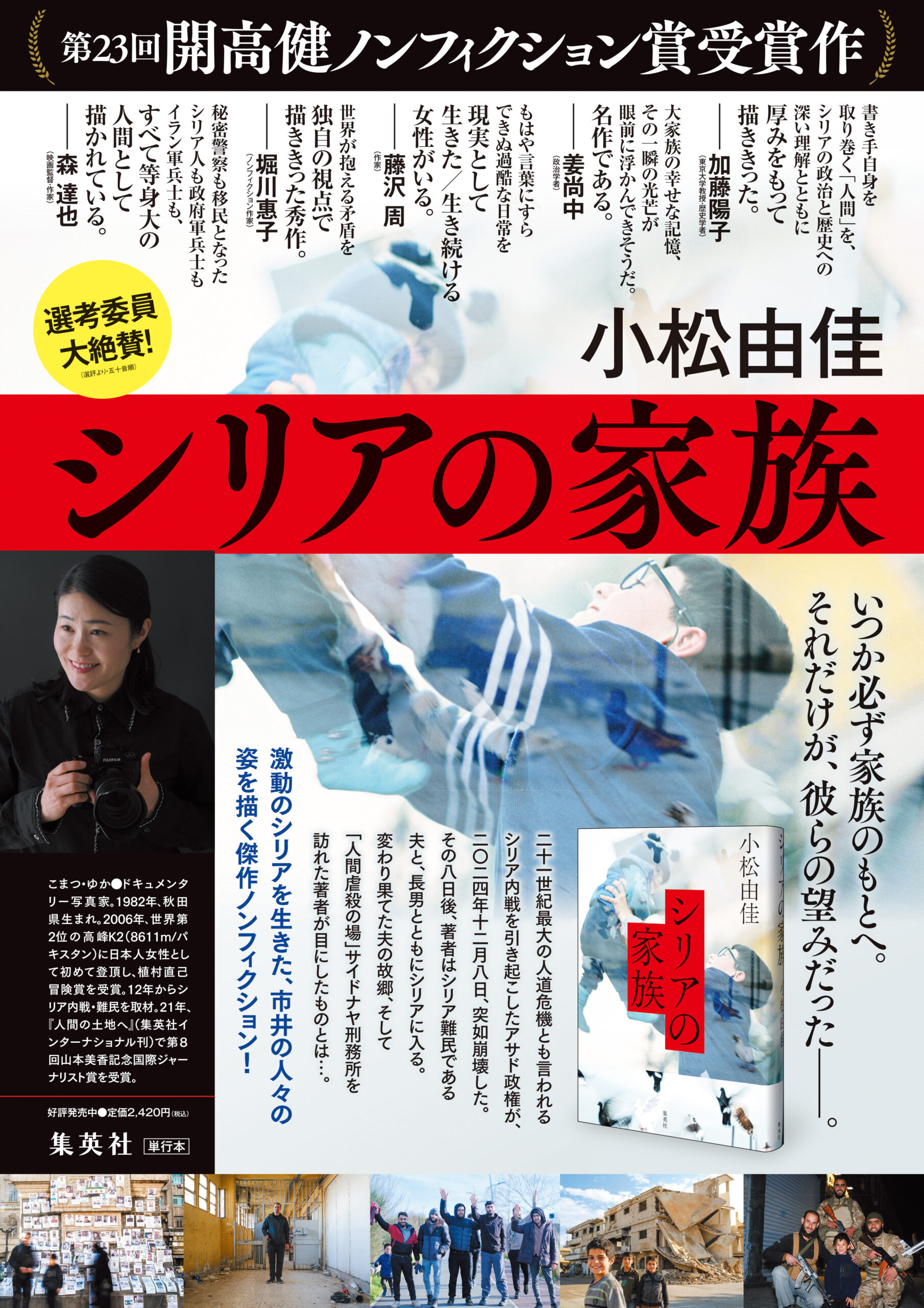 加賀谷書店茨島店では、「シリアの家族」の著書で秋田出身の写真家・小松由佳氏が「第23回開高健ノンフィクション賞」を受賞したことを記念し、サイン会を開催する。小松氏の著書を購入及び他店等で購入済みの方に整理券を配布するので、希望者はレジまで申し出を。当日に来店できない方にも、購入書籍を預かり、サインしたものを後日渡すこともできるので、気軽に参加してみて。
