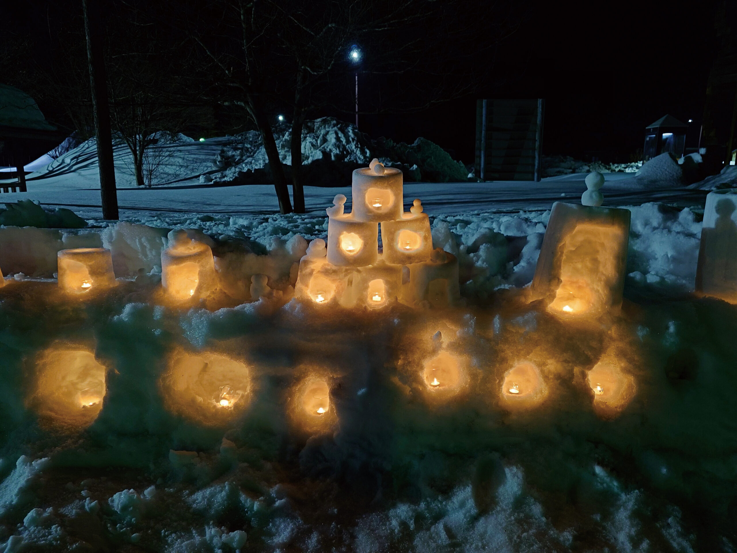 「ミニかまくら作り&キャンドル点火体験」を開催! ふわふわの雪で小さなかまくらを作り、キャンドルを灯せば、辺りは幻想的な光に包まれます。家族や友人と一緒に、冬ならではの思い出を作りませんか? 寒さの中に、心温まる時間が待っています。