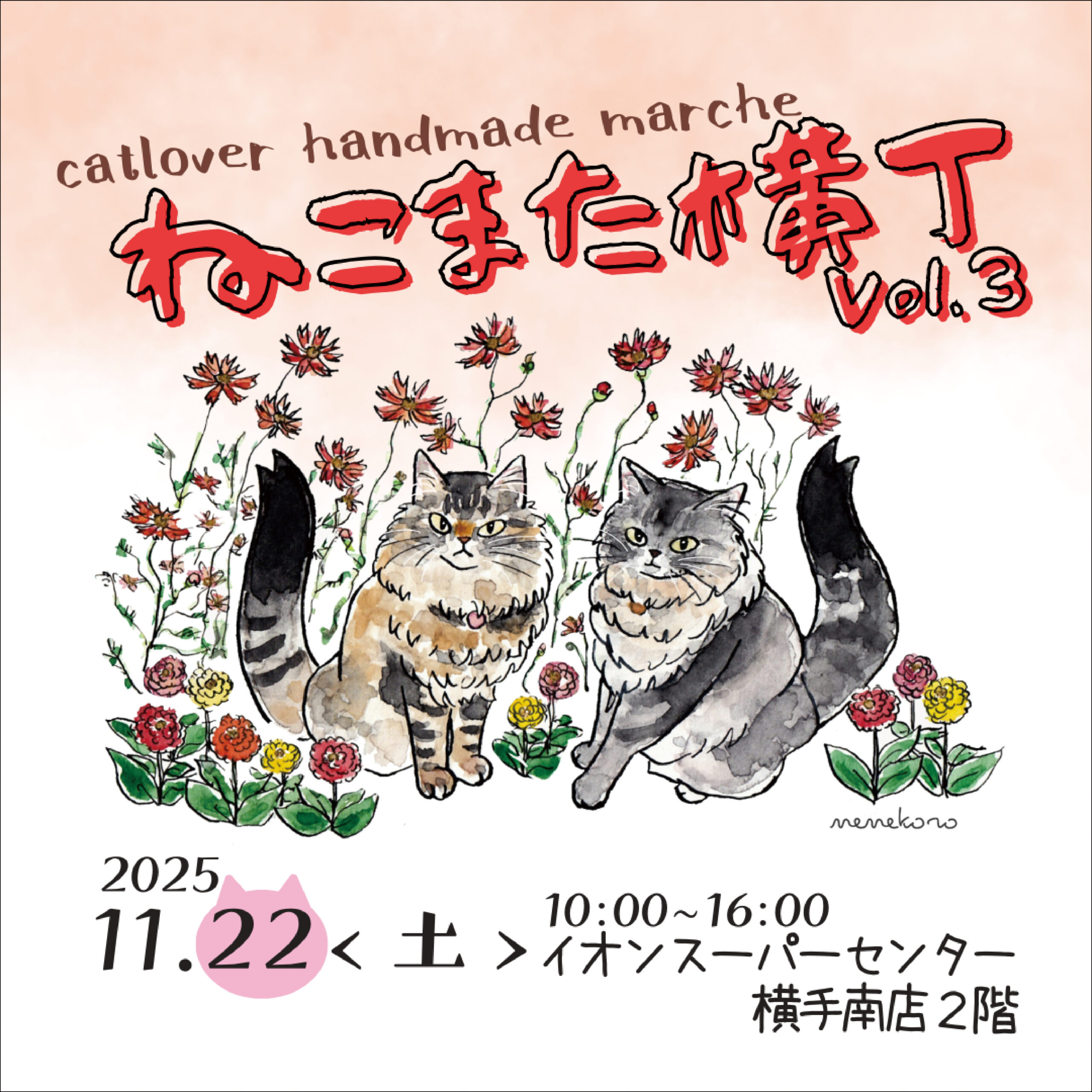 3回目となるにゃんこ系のハンドメイドイベント。ネコをモチーフに作られたハンドメイドのアクセサリーや小物、雑貨類、スイーツなど、ネコ界隈の作家による作品が集う。ネコ好きの作家とのにゃんこトークを楽しめるのもうれしい。また、ワークショップや、人気の「うちのにゃんこ自慢フォト」の展示も開催するので、ぜひ足を運んでみて。