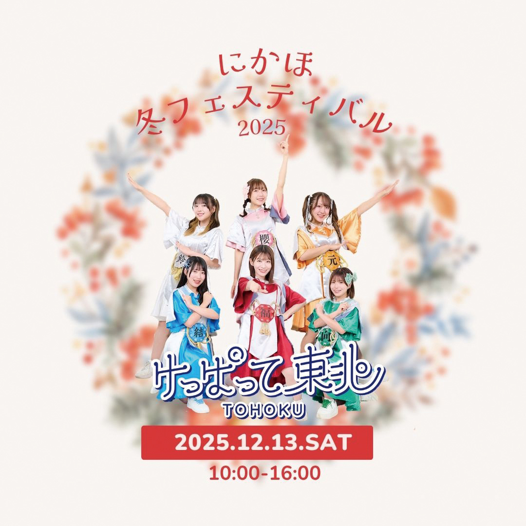 東北の魅力を全国に発信しているアイドルグループ「けっぱって東北」が冬のにかほを盛り上げるっぺん! メンバーの水谷花鈴さんはにかほ市出身。みんなで応援するっぺん! そのほか、「J AL ベルスター」のミュージックベルやマルシェなど、楽しい催しが盛りだくさん。