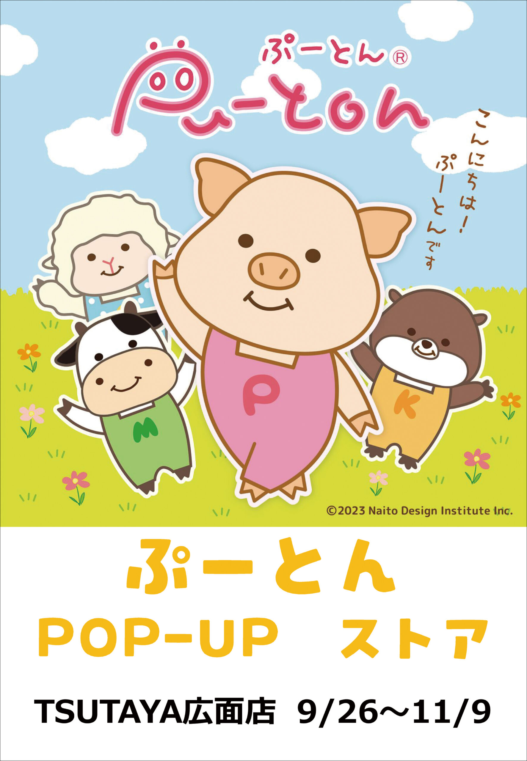 ぷーとんが描かれたポーチやメモ帳といった雑貨や文具、ぬいぐるみなどがラインアップ。また羊の「しーぷん」や牛の「もーもん」、コツメカワウソの「こっつん」のぬいぐるみも並ぶ。にっこりとした表情に癒やされるグッズの数々が手に入るこの機会は見逃せない。