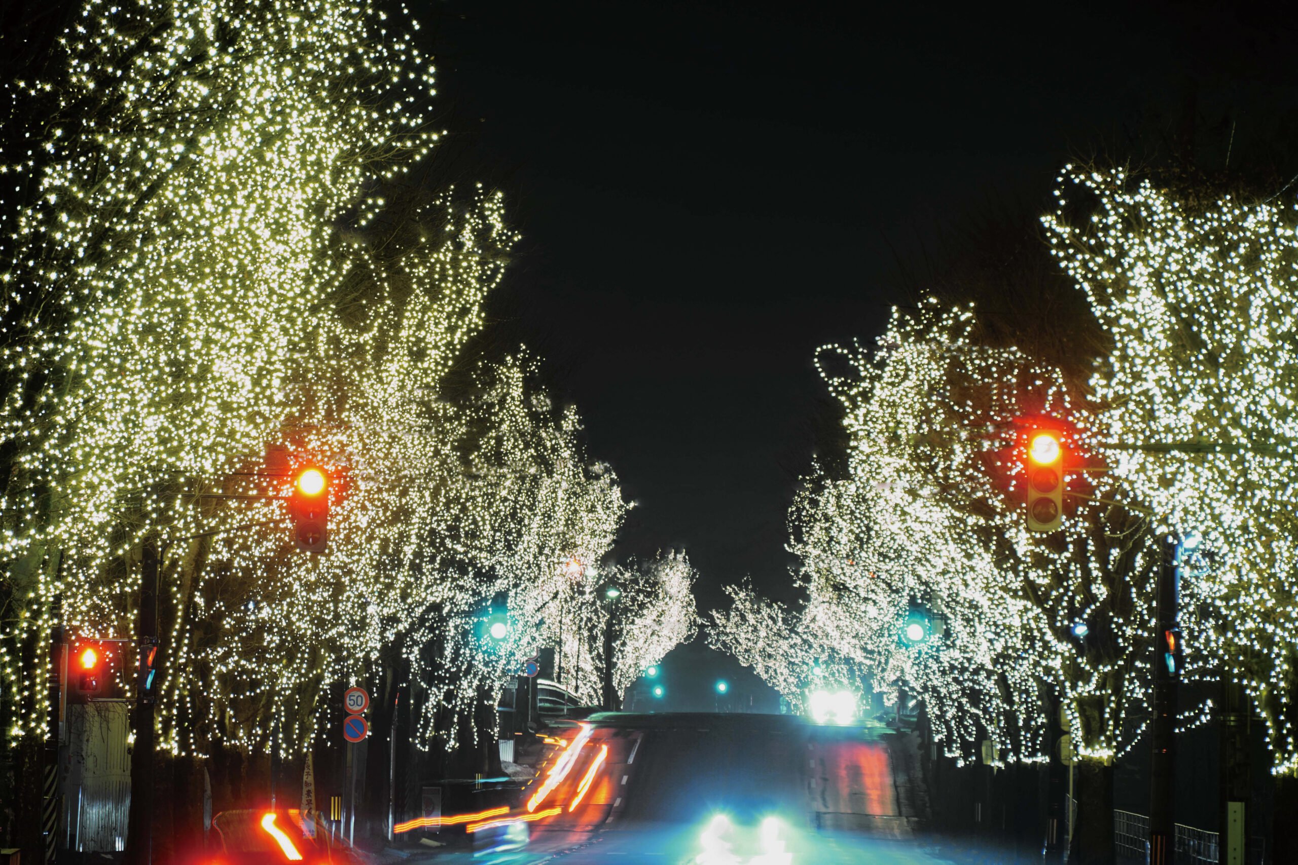 大館市立総合病院交差点から秋田看護福祉大学までの約1,100mの街路樹が光で彩られます。写真コンテストも開催されるので、雪と光が織り成す幻想的な冬の夜を、ぜひカメラに収めてみませんか? この季節だけの特別な輝きは思い出に残ること間違いなしです。
