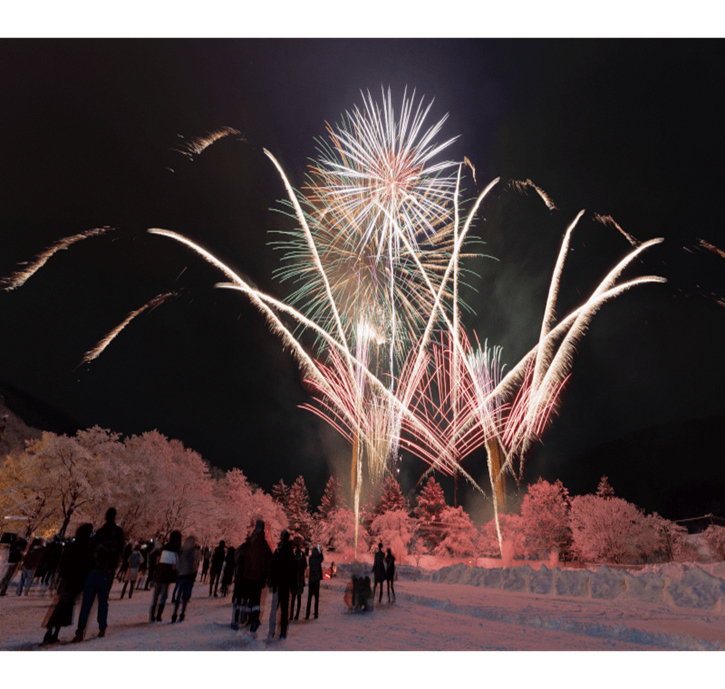 厳寒の澄んだ夜空を彩る冬花火や、地元食材を使ったグルメが並ぶ雪あかり横丁、そして、大自然の中で思い切り楽しめるスノーアクティビティ。ここでしか味わえない冬の魅力を満喫しましょう! また、大切な方へ想いを届けるメッセージ花火(有料)も用意しています。