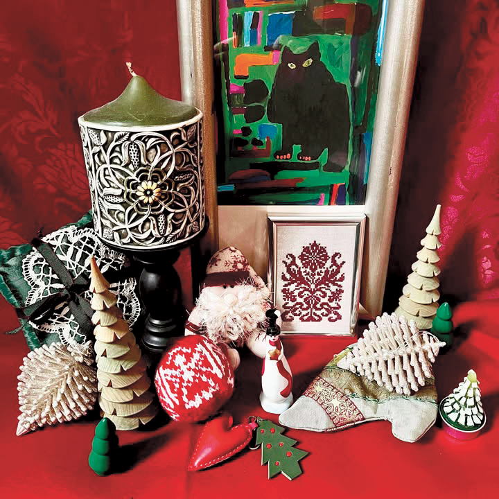 13人のハンドメイド作家による「13人の金曜日」が出品する、リースやレース、キルト、刺しゅう作品、輸入雑貨、創作クラフトが並ぶ。クリスマスにぴったりの装飾品の数々を、この機会にぜひ手にとってみて。