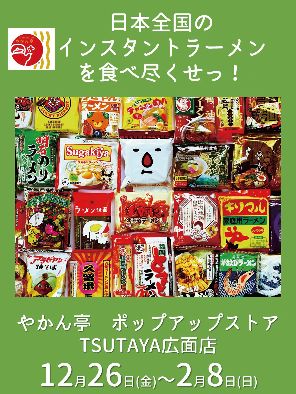稀代のインスタントラーメンマニア・大和イチロウ氏が代表を務める「やかん亭」のPOP-UPストア。全国各地で愛されているインスタントラーメンを販売し、なかなかお目にかかれない珍しい商品や懐かしの味がずらり。各地のご当地ラーメンをこの機会に味わってみて。