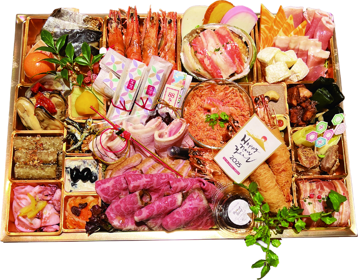エリアなかいちに構える、人気のデリカテッセンから、毎年恒例・完売必至のオードブルが今年も登場。有頭海老のカダイフ巻きやローストビーフをはじめ、88バルならではのアクセントが効いた料理が愉しめる。クリスマス期間は、別途パエリアやPIZZAも提供しているので、華やかなパーティにぜひ。おせちは、より豪華におしゃれに、語らいの場を盛り上げることまちがいなし!