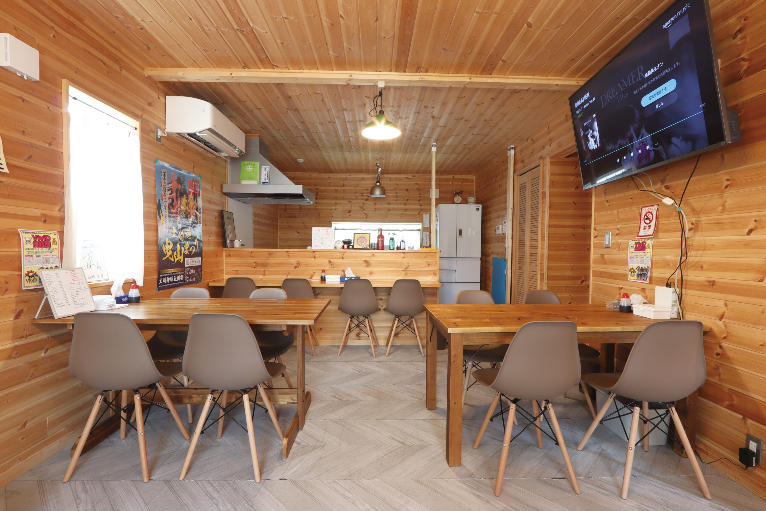 秋田市土崎の住宅街に7月、母と息子が二人三脚で営む食事処がオープン。自宅を改装したログハウス風の温もりある店内で味わえるのは、どこか懐かしさを感じる家庭料理。昼は日替わりの「ランチセット」、夜は「からあげ」や「芋ぎょうざ」などお酒とともに楽しめる多彩な一品料理を用意している。店の奥には座敷のキッズスペースも用意し、子ども連れも気兼ねなく過ごせるのがうれしい。
