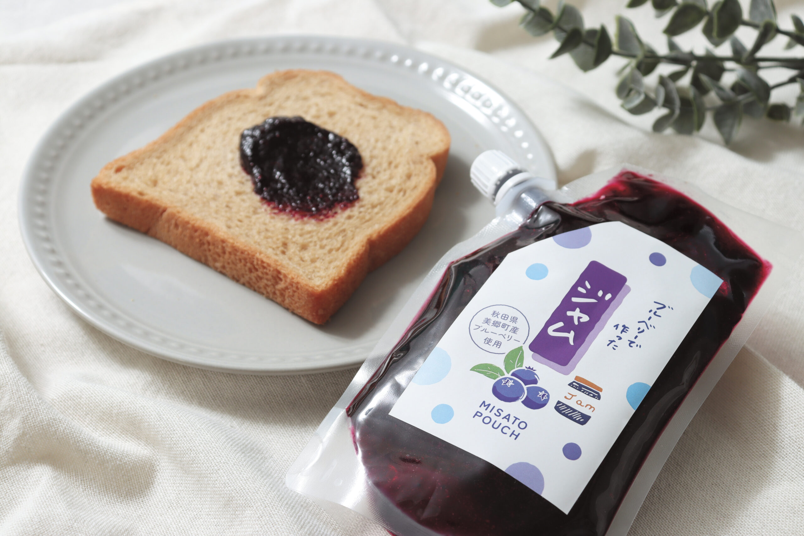 (トップ)ブルーベリーの酸味や甘みをダイレクトに感じられる「MISATO POUCH・ブルーベリージャム」は、パンなどに塗って味わうのがオススメ。