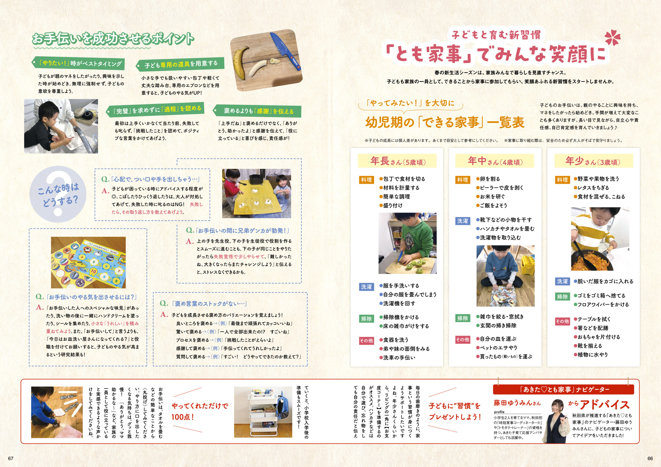 さらに! 子どもと育む新習慣「とも家事」や朝と夜の習慣を見直す方法など、ファミリー必見の春のおすすめトピックスを集めた企画「あきた de FAMILY LIFE」もチェックを!