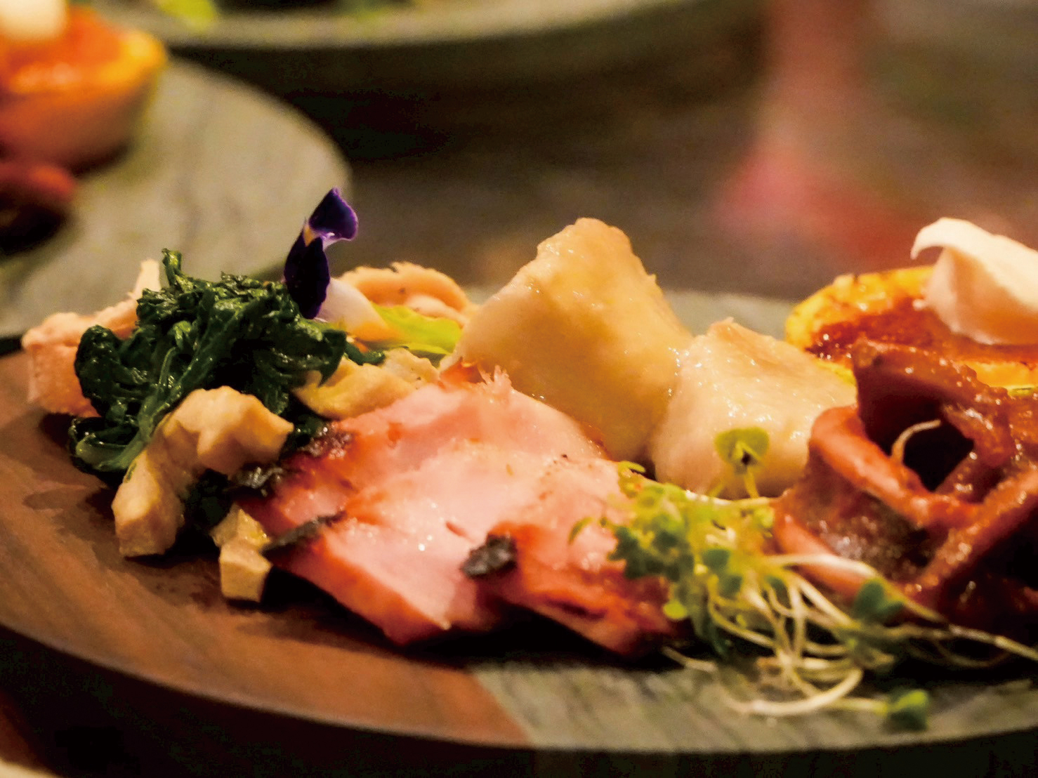 横手市の人気居酒屋「よこてのわがや」が10月24日、2号店となる「SLOW」を同地区にオープン。店内はカウンター8席のみで、オーナーの目と手が行き届くこぢんまりとした空間。地域の伝統的な食文化を守り、食への関心を高める取り組みである〈スローフード〉をコンセプトに、「宮古の鯨2種食べ比べ」や「十豚のコンフィステーキ」など地場産・東北産の食材を使ったコース2種類・5,500円〜を提供する(前日まで要予約)。また、気軽に利用できるようアラカルトメニューも用意。東北各地から仕入れる日本酒やワインと堪能しよう。