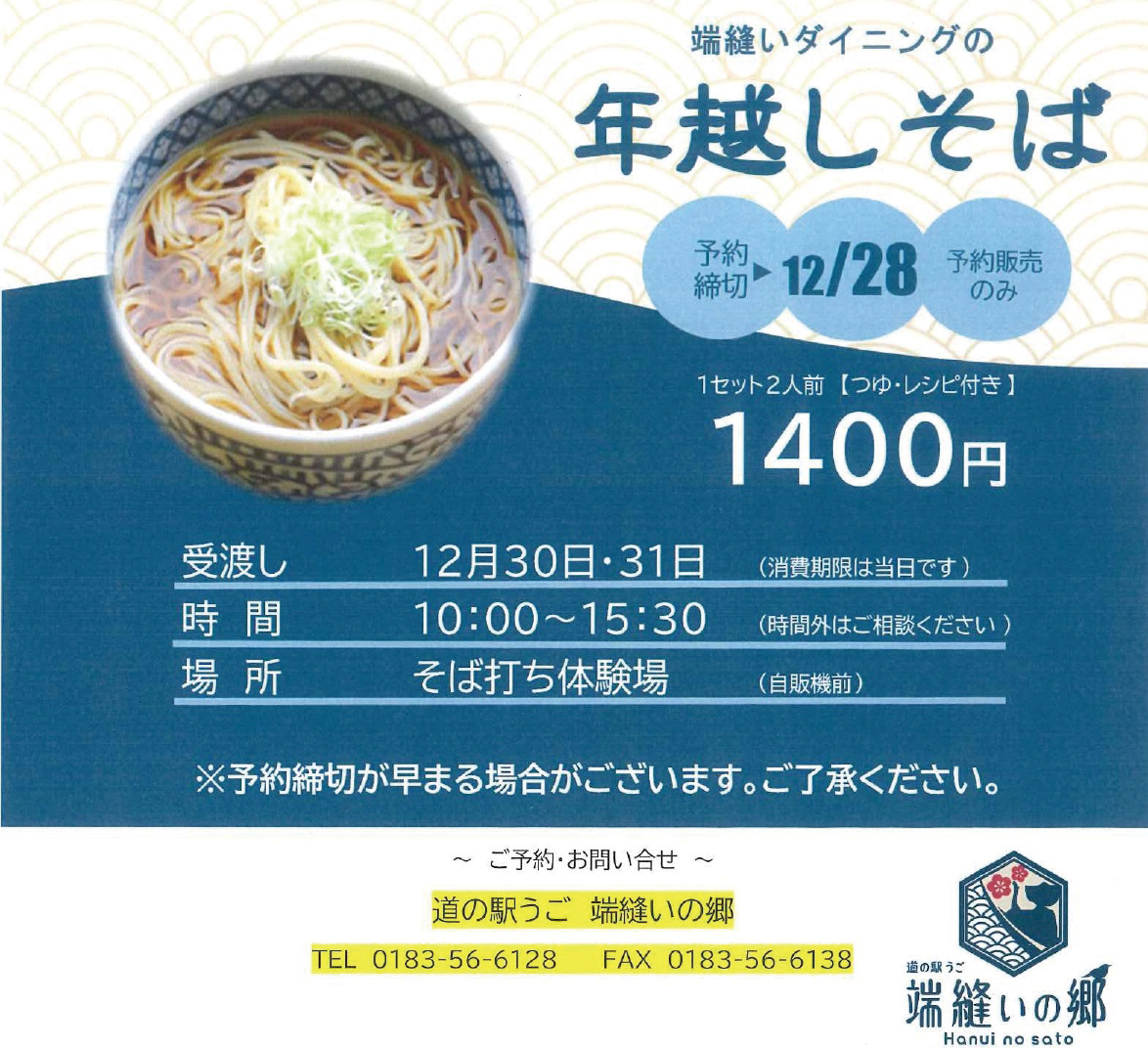 「道の駅うご 端縫いの郷」では、今年も年越し蕎麦とクリスマスアイスケーキの予約注文を開始しました。レストラン・端縫いダイニングで提供される西馬音内そばをご自宅でも味わえます。クリスマス限定のアイスケーキは、アイスのフレーバーが選べます! ぜひご賞味ください。
