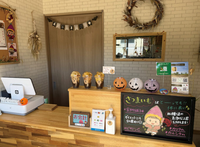 毎年好評のJR井川さくら駅のイルミネーション。今年は新たに駅舎屋上に光源となる機器を設置し、駅前広場の地面に桜の花びらや日本国花苑にある彫刻「ゴリ山」などを投影しています。