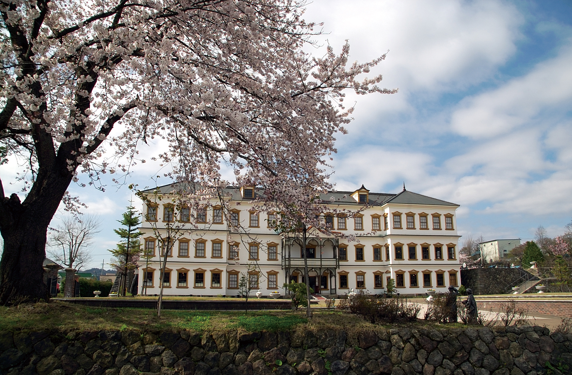 「小坂鉱山事務所」の周辺では、例年4月中旬~下旬にかけて桜が見頃を迎えます。レトロな洋風建築と淡い桜色が織り成す景観は、小坂町ならではの春の風景です。広場からは建物全体と桜を一望でき、写真撮影スポットとしても人気。散策や記念撮影を楽しんでみては。
