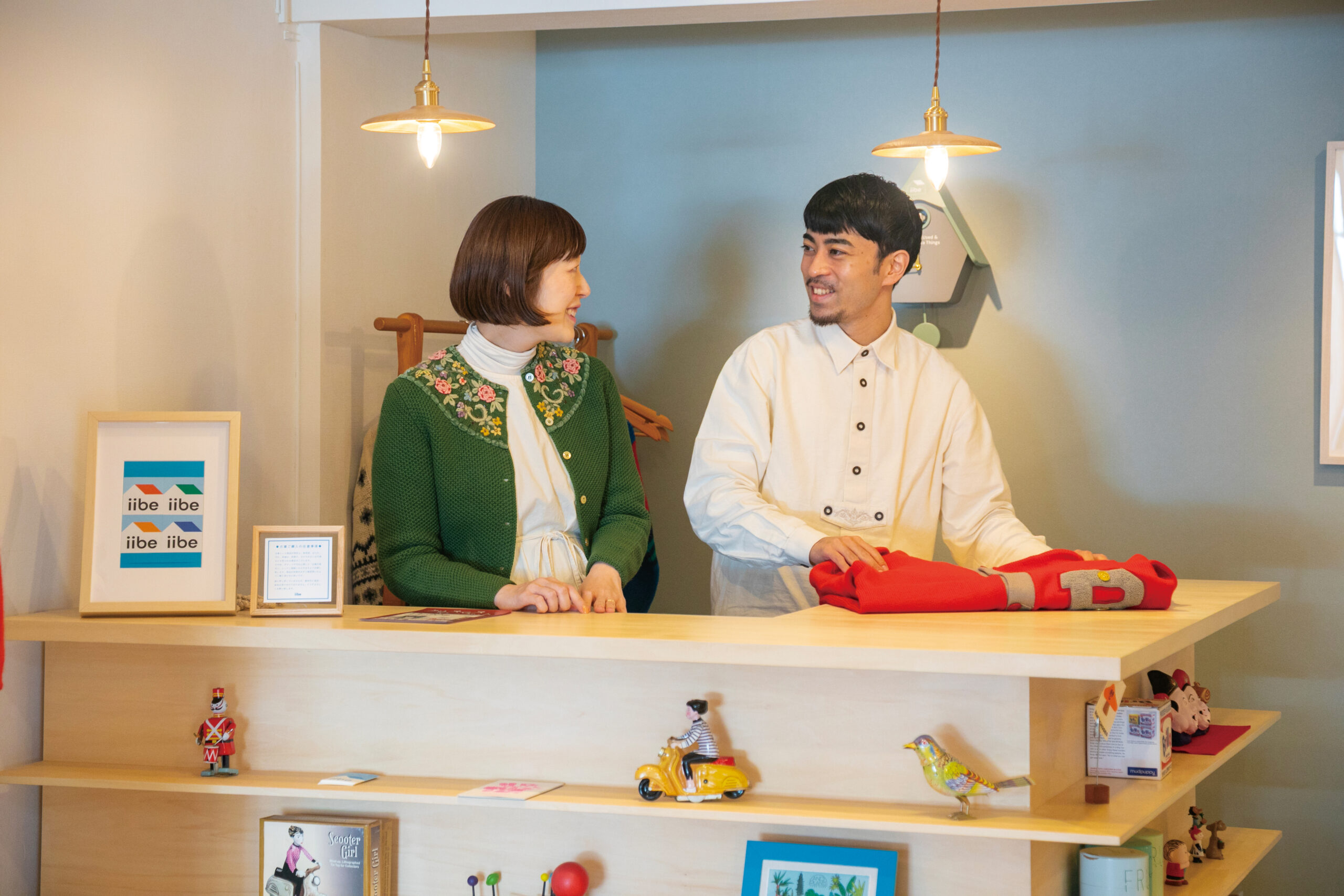 仲良く営む宗形さん夫妻。明るい気持ちになるファッションを提案してくれる。