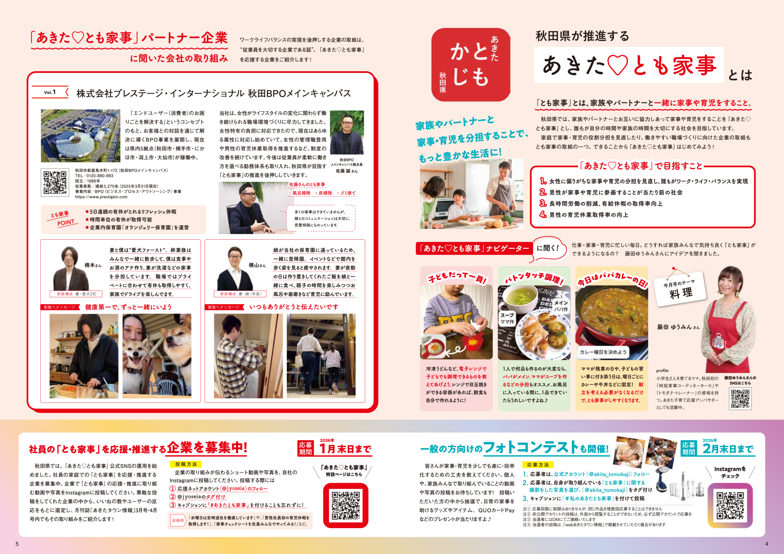 県内企業を対象に、社員の家庭での「とも家事」を応援・推進する企業を募集中。企業で「とも家事」の応援・推進に取り組む動画や写真をInstagramに投稿または県の下記応募フォームから応募してください。素敵な投稿をしてくれた企業の中から、いいねの数やユーザーの反応をもとに選定し、月刊誌「あきたタウン情報」内でもその取り組みをご紹介します!