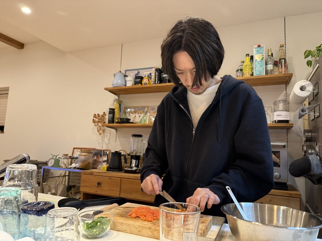 「職場では、チームのマネジメントやクライアント企業との打ち合わせなどの業務を担当しています。妻と愛犬2匹(豆柴)と暮らしていて、終業後はみんなで一緒に散歩をして、僕は食事やお酒のアテ作り、妻はお金の管理を担当。家事については『気づいた方がやる』ようにして、洗濯や片付けなどはその時々で分担しています。妻は手が荒れやすいので、水回りなどはサポートするように心がけていますね」