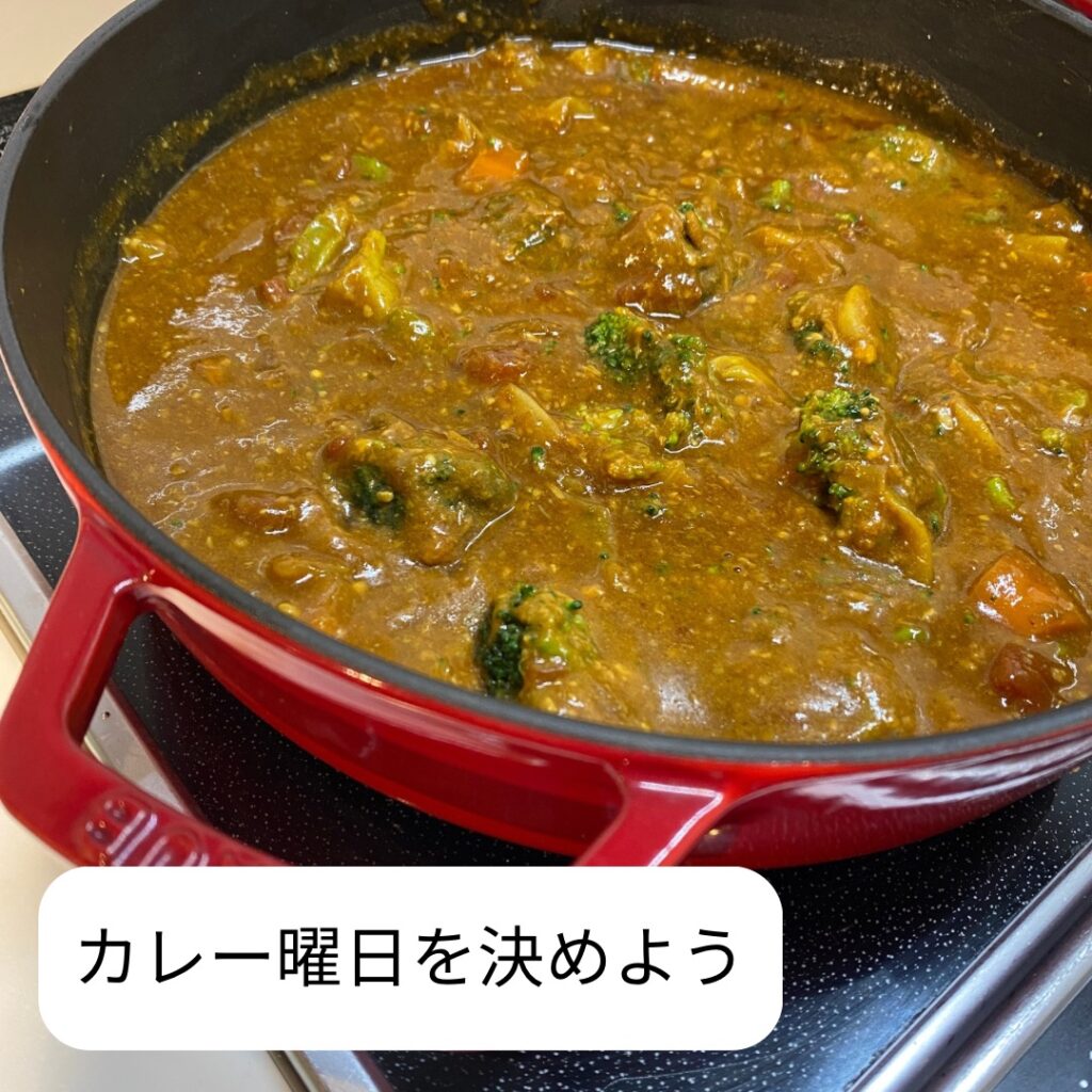 ママが残業の日や、子どもの習い事に付き添う日は、曜日ごとにカレーや牛丼などに固定! 献立を考える必要がなくなるだけで、とも家事がしやすくなります。