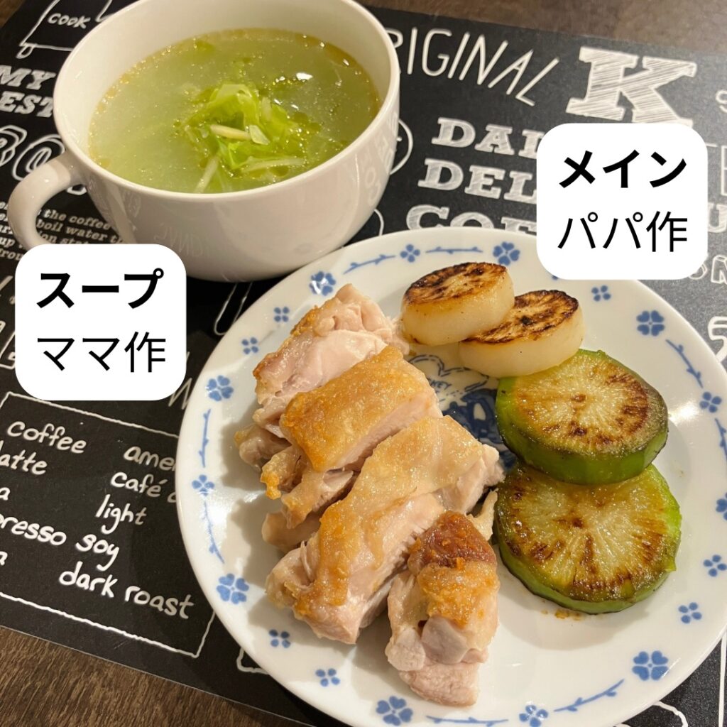 1人で何品も作るのが大変なら、パパがメイン、ママがスープを作るなどの分担もオススメ。お風呂に入っている間に、1品できていたらうれしいですよね♪