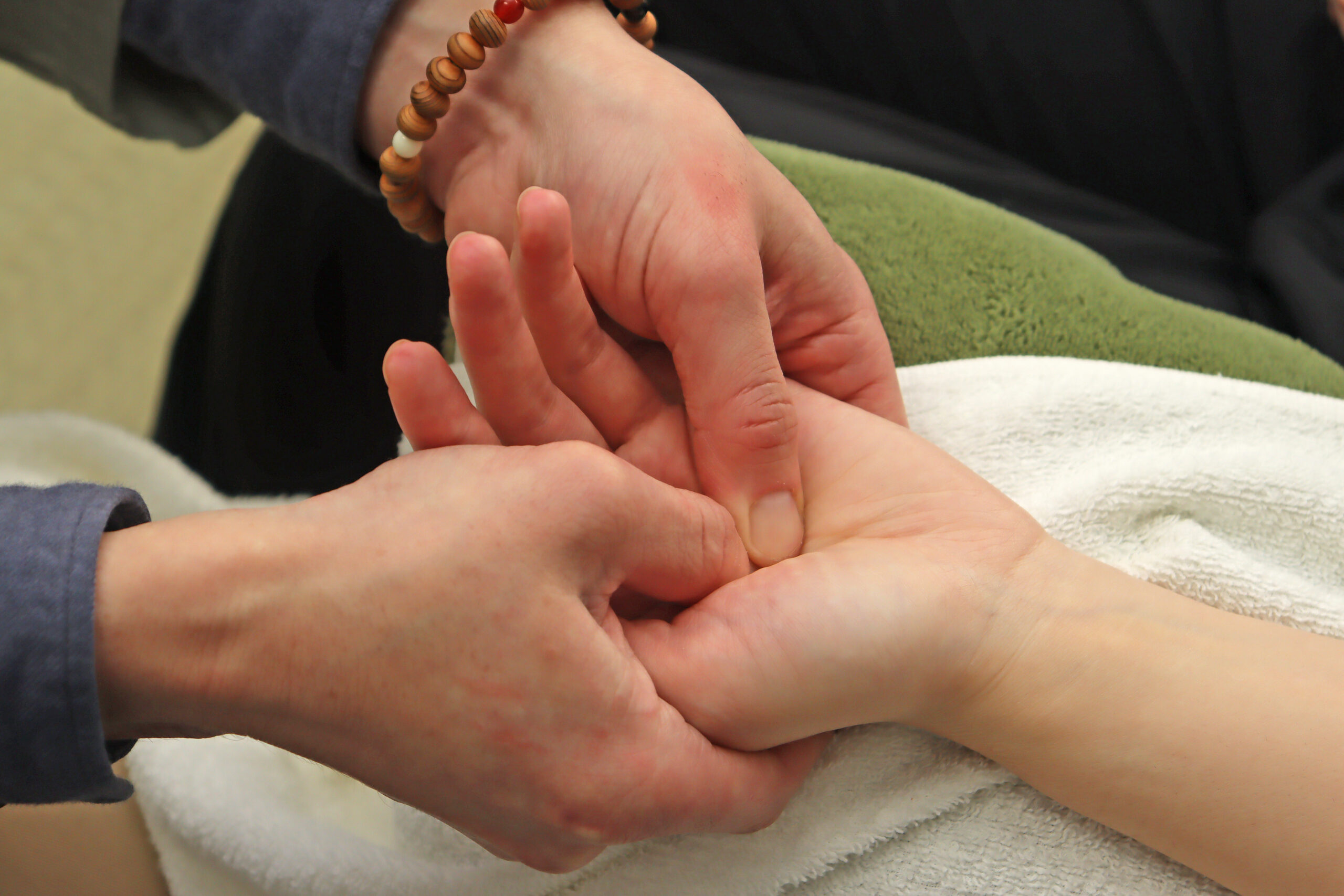 ハンドソロジー®は、手と腕の反射区、ツボ、経路を刺激する施術。血液循環を促進させ、健康維持を図る。