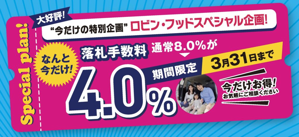 ロビン・フッドでの落札手数料 通常8.0%が半額の4.0%に!