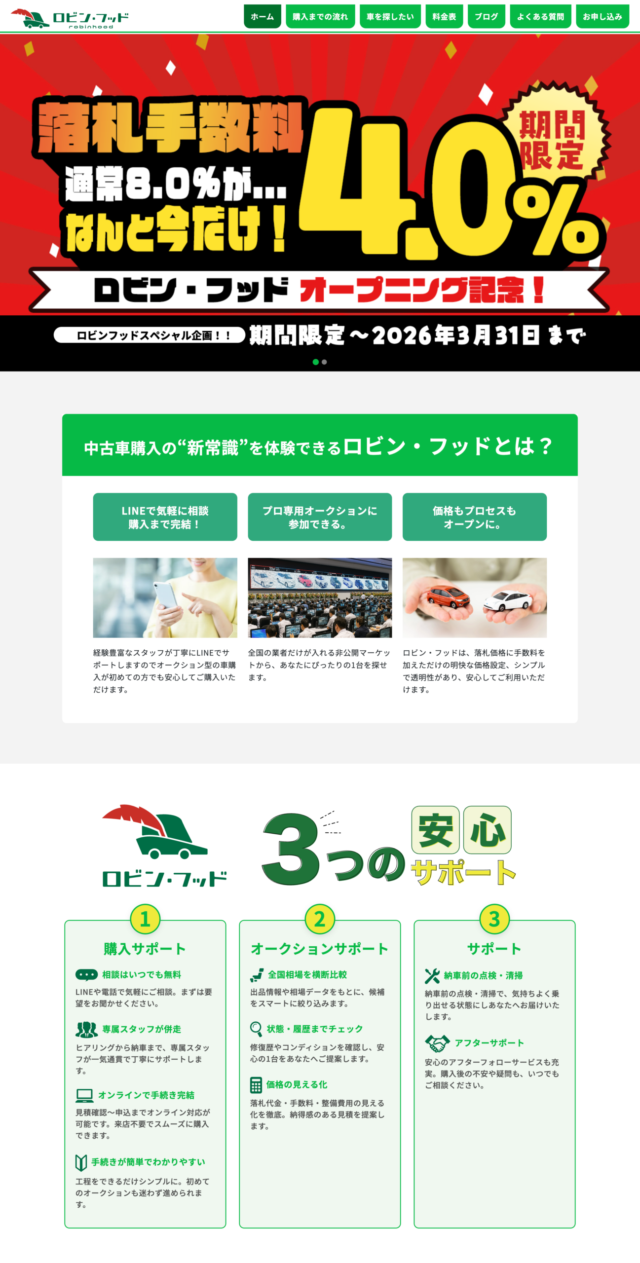 「ロビン・フッド」は、オークションを使用してお客様と一緒に行う、体験型の中古車購入サービスです。
