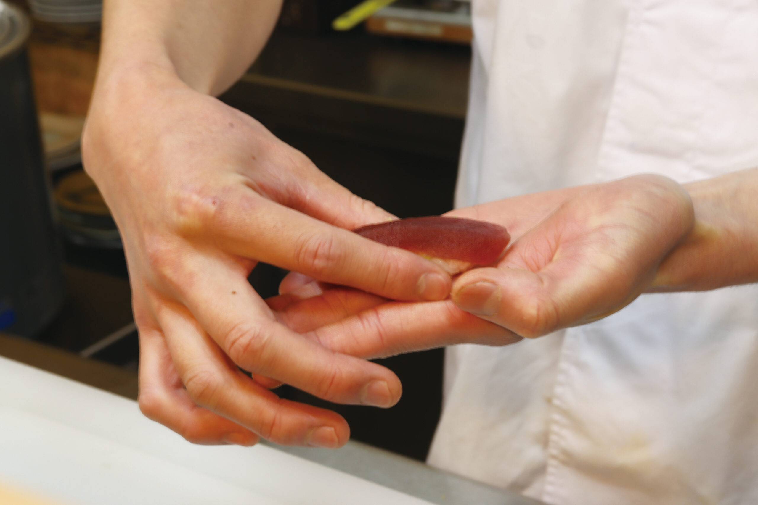 熟練の技で握られる寿司。